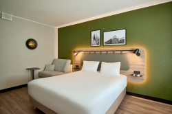 Hotel oferuje 106 wyjątkowo przestronnych pokoi z komfortowymi łóżkami: w tym 63 pokoi dwuosobowych z łóżkiem typu Queen Size (160 x 200 cm) oraz 43 pokoi dwuosobowych z dwoma pojedynczymi łóżkami (90 x 200 cm). Powierzchnia ok. 20 m2 oraz ułożenie pokoi, zapewnia komfort szczególnie dla zorganizowanych grup turystycznych (możliwość dostawki). Wszystkie pokoje są klimatyzowane, posiadają łazienkę z prysznicem lub wanną, duże biurko, zestaw do parzenia kawy i herbaty, telewizor z dostępem do telewizji satelitarnej Canal+ oraz posiadają dostęp do wi-fi po zalogowaniu przez platformę. Oferujemy 2 pokoje dostosowane do potrzeb osób z niepełnosprawnościami.